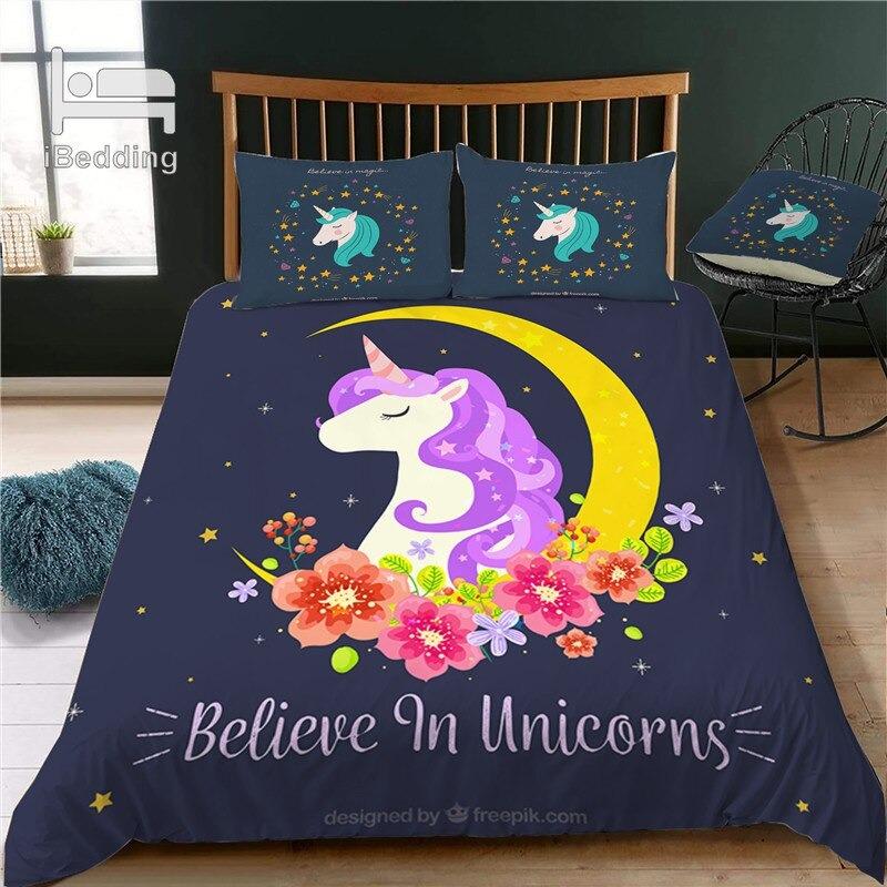 Housse de Couette Licorne Lune + Taie d’oreiller pour des rêves magiques